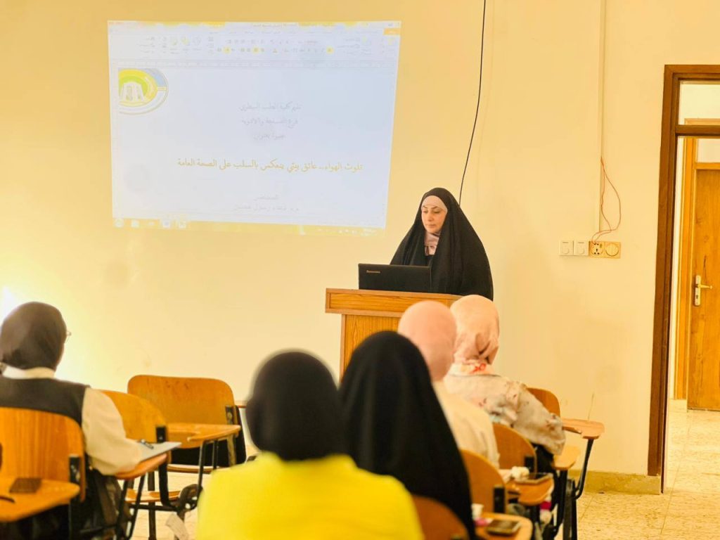 تناولت الندوة التي قدمتها المدرس المساعد دعاء رسول محسن كيفية تاثير تلوث الهواء على البيئة سلبا بحضور عدد من الطلبة الكلية .